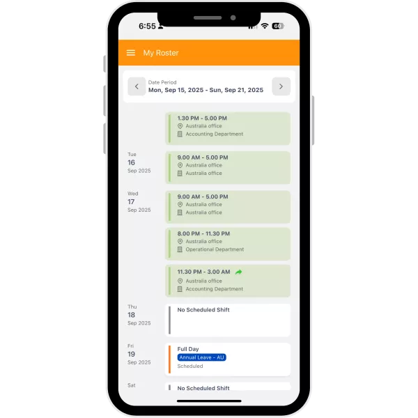 OrangeHRM’s scheduling (roster) capabilities are built to align staffing with demand while protecting employee fairness: