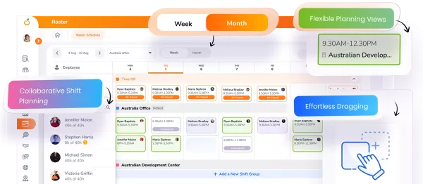 Drag-and-drop roster builder — build weekly or monthly rosters quickly and edit in a few clicks.